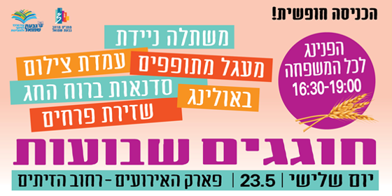 יום שלישי 23/5 בין השעות 16:30-19:00
