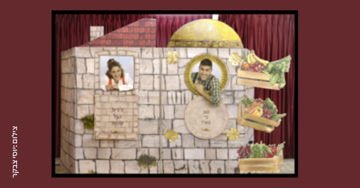 בתמונה: ציור של בית עם כיפות עגולות, שני שחקנים מציצם מהחלונות