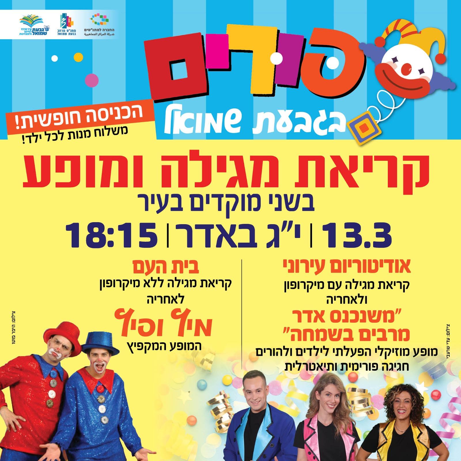 מופע מוסיקאלי הפעלתי לילדים והורים - חגיגה פורימית ותיאטרלית