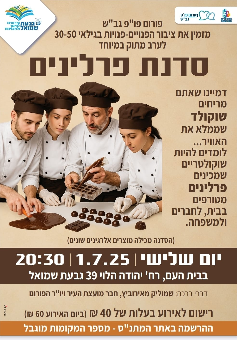ציבור הפנויים-פנויות בגילאי 30-50 מוזמן לערב מתוק במיוחד - סדנת פרלינים