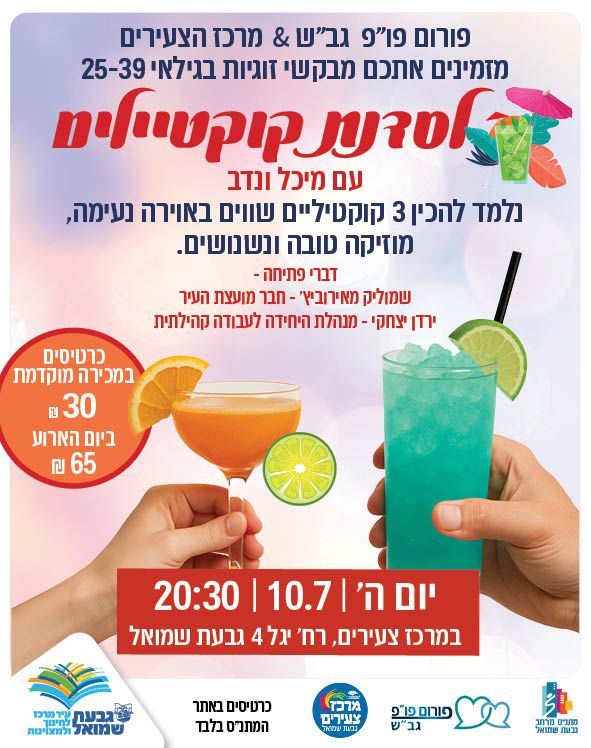 פורום פו"פ גב"ש והמרכז לצעירים- מזמינים - לסדנת קוקטלים