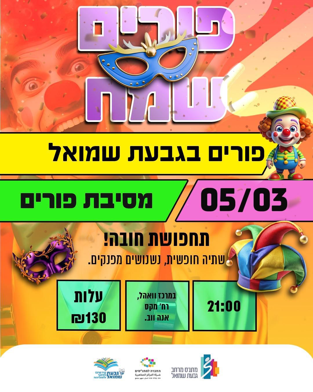 נשף פורים נהדרת למבוגרים במרכז ווהל - בוטל