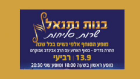 13 ספטמבראירועים - מופעים והצגותבנות נתנאל שרות סליחות - בשעה 18:00
