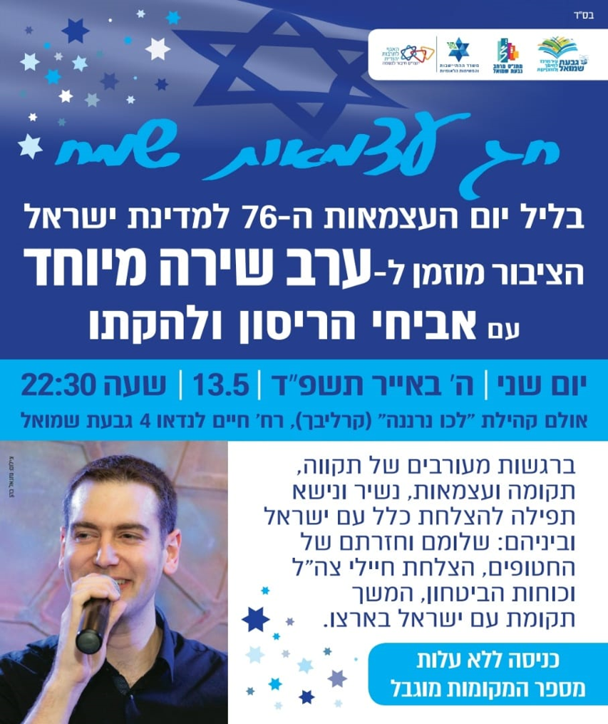 ערב שירה ליום העצמאות עם אביחי הריסון ולהקתו