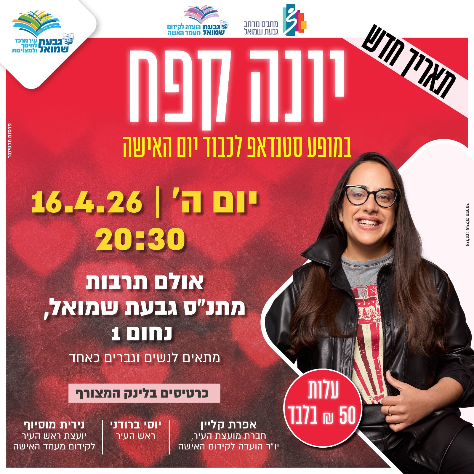 יונה קפח במופע סטנדאפ ליום האישה 16.4