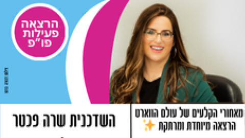 27 ינואראירועים - מופעים והצגותפורום פו"פ גב"ש מזמין- למפגש מיוחד עם: השדכנית שרה פכטר מתוכנית הטלוויזיה "ווארט"